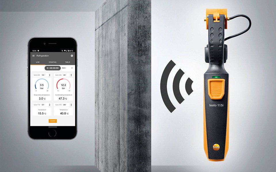 testo 115i 智能無線迷你管鉗式溫度測(cè)量?jī)x,可用于空調(diào)和制冷系統(tǒng)進(jìn)行維修保養(yǎng)、故障排除以及安裝測(cè)試。還可以用于測(cè)量回流溫度。